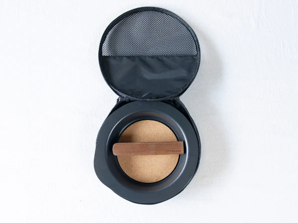 専用ケースに本体、木製取っ手、コルク鍋敷きがぴったり収納できてコンパクトに!