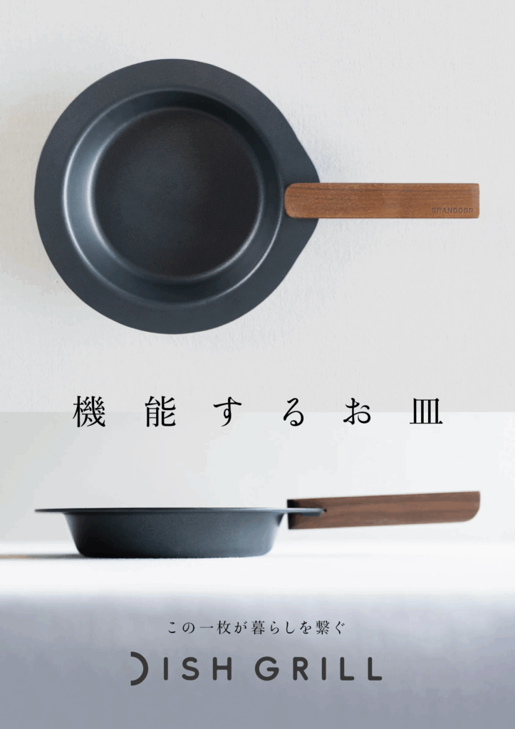 DISHGRILL(ディッシュグリル)は、器にもフライパンにもなる キッチンをダイニングをシームレスで繋ぐ新しい概念のお皿 です。