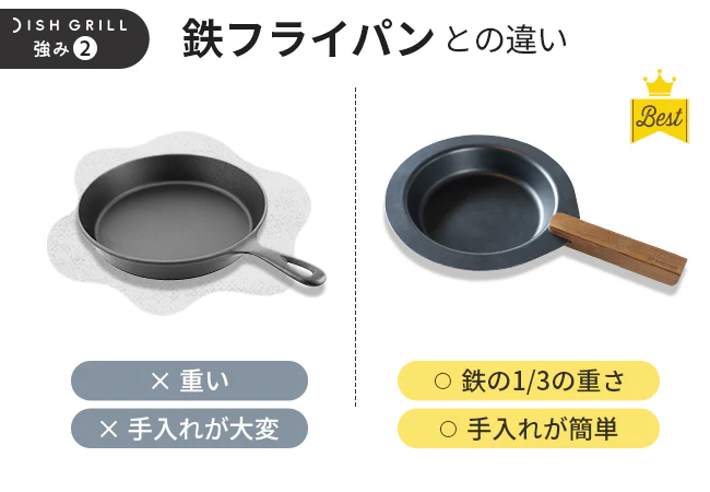 重さはスキレットなどの鉄フライパンの1/3の重さ約480g。