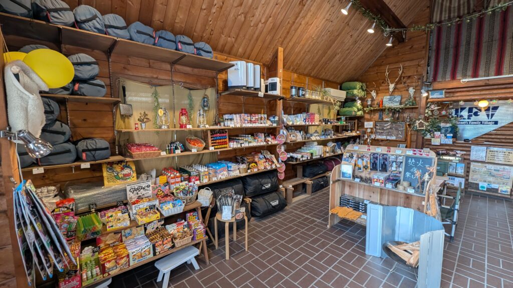 売店もあり品揃え良いです。キャンプ道具のレンタルなどもあります。