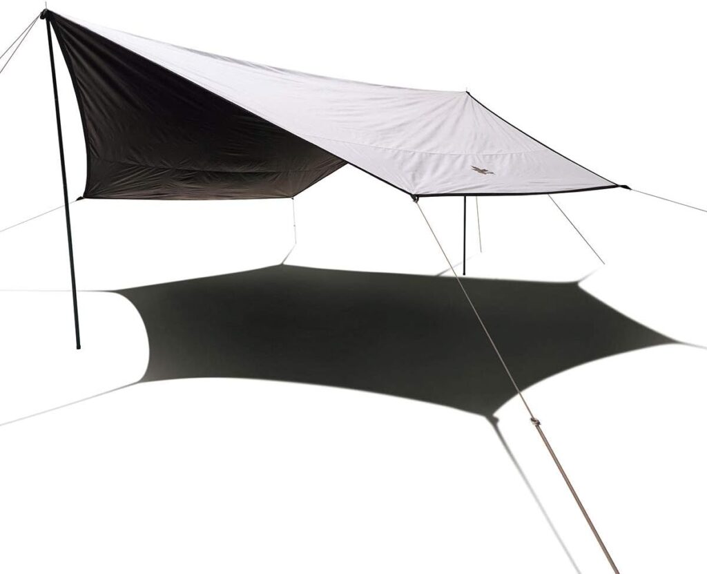 ヘキサ型(六角形)のシルエットが美しく、どんなテントとも相性が良い「優等生」なタープです。